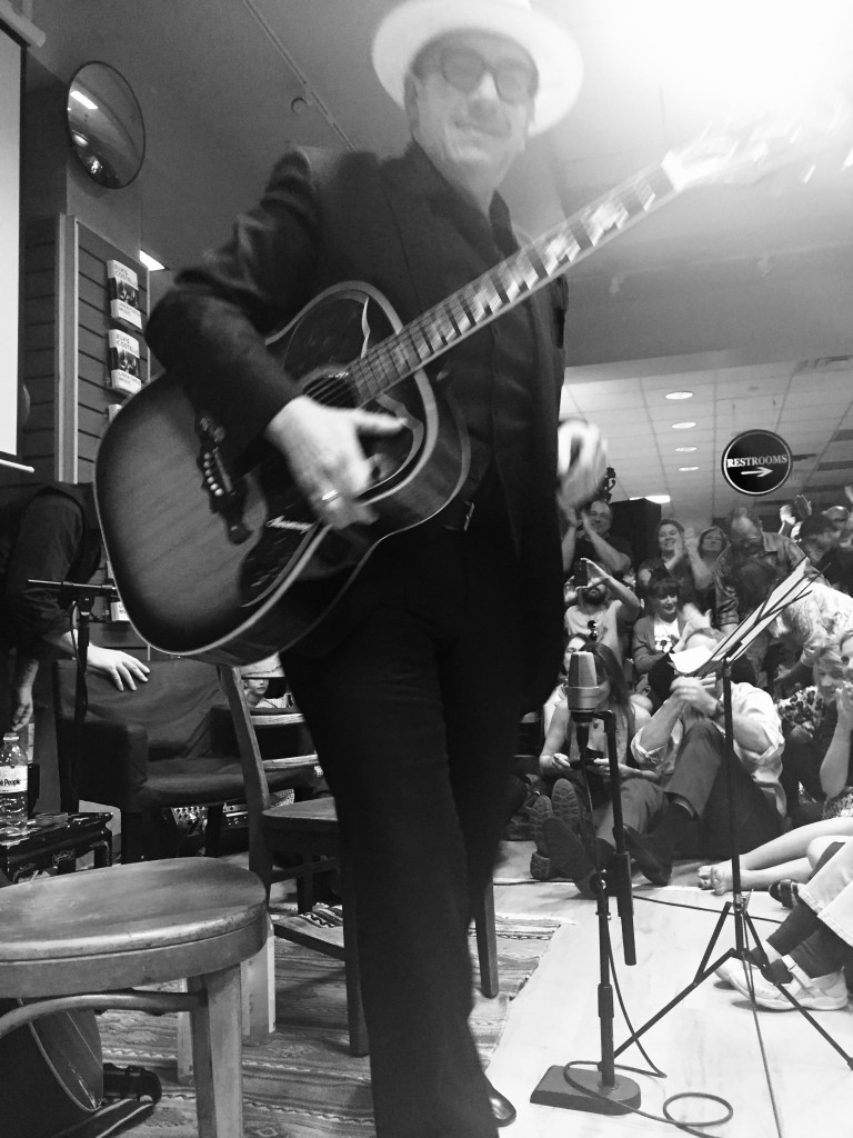 IMG_2098-768×1024 Previous Next Published August 2, 2016 at 768 × 1024 in Elvis Costello’s memoir: Unfaithful Music & Disappearing Ink Elvis Costello looking into the camera and holding his guitar whilst departing the interview stage at Book People in Austin, Texas on October 20, 2015.