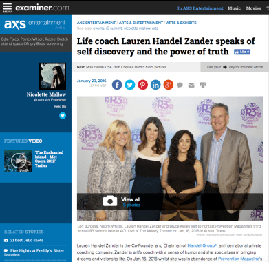 Screen Shot 2016-07-07 at 4.25.59 PM Previous Next Published August 4, 2016 at 884 × 858 in Life coach Lauren Handel Zander speaks of self-discovery and the power of truth Screenshot from original publication on Examiner.com.