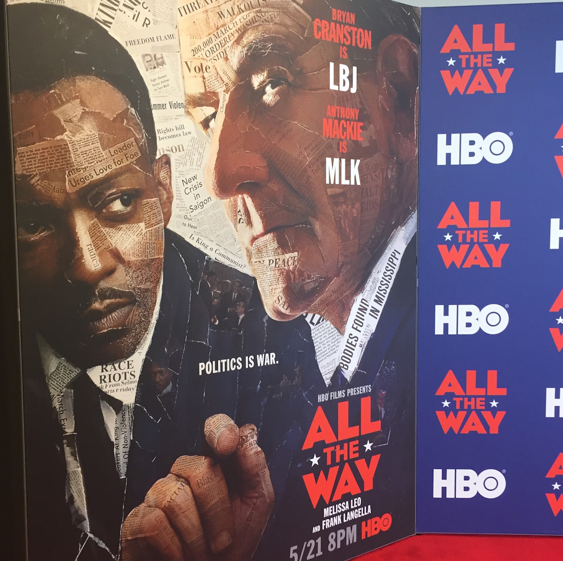 According to HBO: “All The Way” offers a riveting behind-the-scenes look at President Lyndon B. Johnson’s tumultuous first year in office after the assassination of former President John F. Kennedy. Staking his presidency on what would be a historic, unprecedented Civil Rights Act, Johnson found himself caught between the moral imperative of Dr. Martin Luther King, Jr. and the expectations of the Southern Democratic Party leaders who brought Johnson to power. As King battles to press Johnson while controlling more radical elements of the Civil Rights Movement, Johnson navigates the bill through Congress, winning a landslide victory against Barry Goldwater, but causing the South to defect from the Democratic Party. Following its critically acclaimed, award-winning Broadway run, “All The Way” comes to HBO on May 21, 2016. Actor, Bryan Cranston (four-time Emmy® winner for “Breaking Bad”) reprises his Tony Award-winning role as LBJ for the HBO Films presentation, which also stars Anthony Mackie as MLK (“The Hurt Locker”) and is Directed by Jay Roach (“Trumbo”; Emmy® winner for HBO’s “Game Change” and “Recount”) from a screenplay by Robert Schenkkan (Pulitzer Prize winner for “The Kentucky Cycle”; two-time Emmy® nominee and Writers Guild Award winner for HBO’s “The Pacific”), who has adapted his Tony Award-winning play of the same name.”