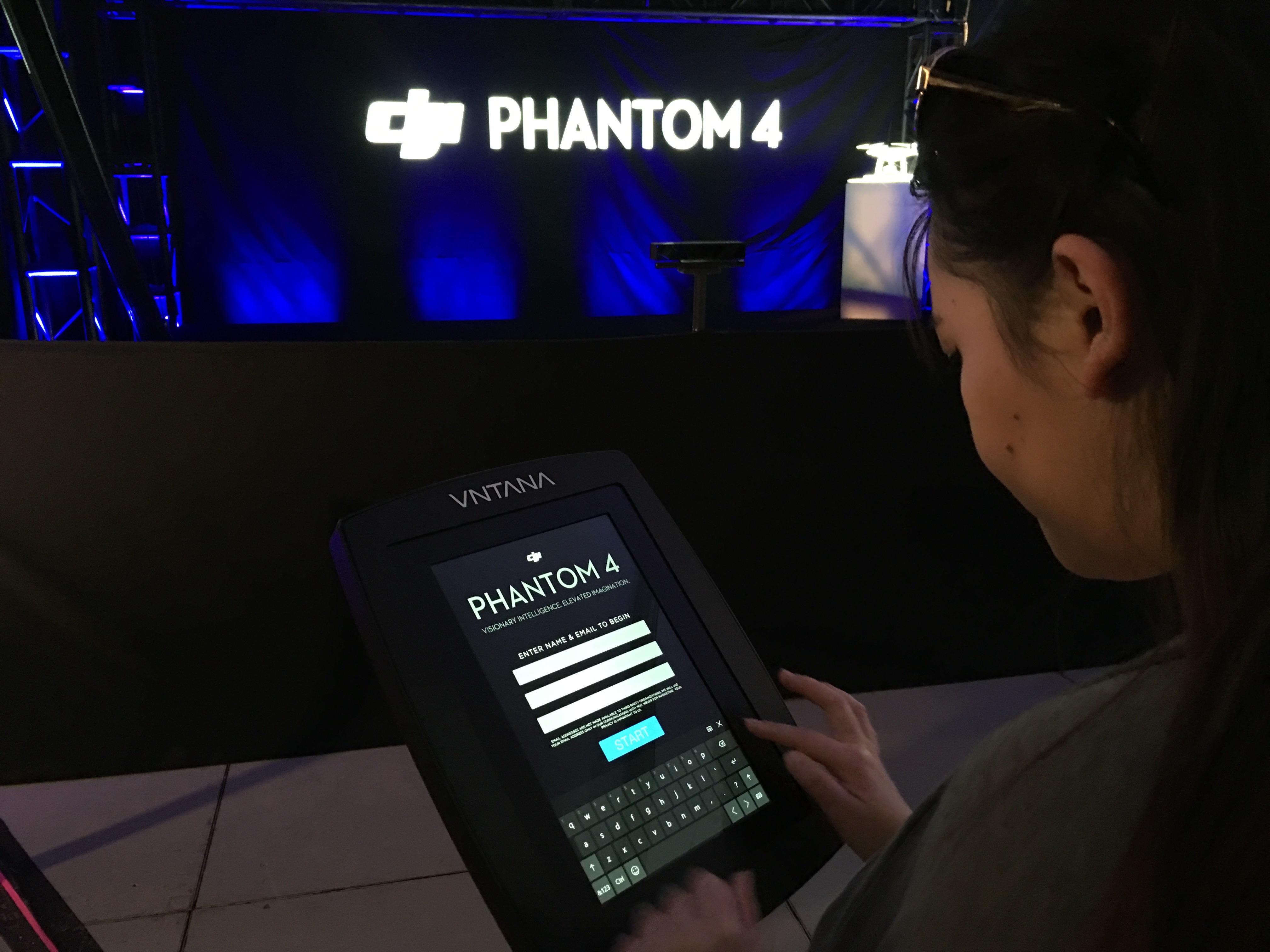 The interactive lounge was set up along Rainey Street close to SouthBites™. During this time SXSW attendees could see themselves projected as a hologram in real-time standing next to a hologram of the new DJI Phantom 4 Drone hovering next to them. The Phantom 4 is the first consumer quadcopter camera (or “drone”) to use highly advanced computer vision and sensing technology to make professional aerial imaging easier for everyone. Using gestures, attendees were able to control the hologram drone and even see the interiors of the drone. At the end of the experience, attendees received a hologram GIF via e-mail. To see video footage of attendees experiencing their lounge at SXSW, please visit Vimeo and watch “DJI Phantom 4 Interactive Hologram Drone Experience – Powered by VNTANA”.