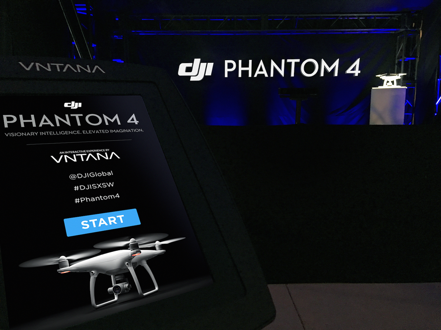 DJI Phantom 4 drone and VNTANA hologram technology at SXSW 2016 in Austin, Texas. Photography provided by VNTANA and DJI.